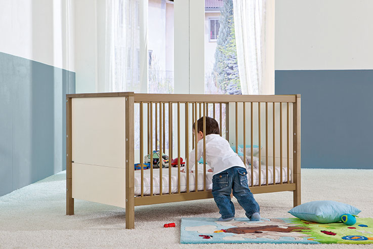 All unsere Möbel halten strengstens die DIN-Normen ein, sind mit giftfreien Lacken behandelt und aus der Sicht der Kinder entwickelt. Sie verfügen über Tür- und Schubladendämpfung, die Gitterbettchen über 2-3 Schlupfsprossen, der Federleistenrost im Babybettchen lässt sich auf vier unterschiedliche Höhenniveaus verstellen, um auch den Elternrücken zu entlasten.